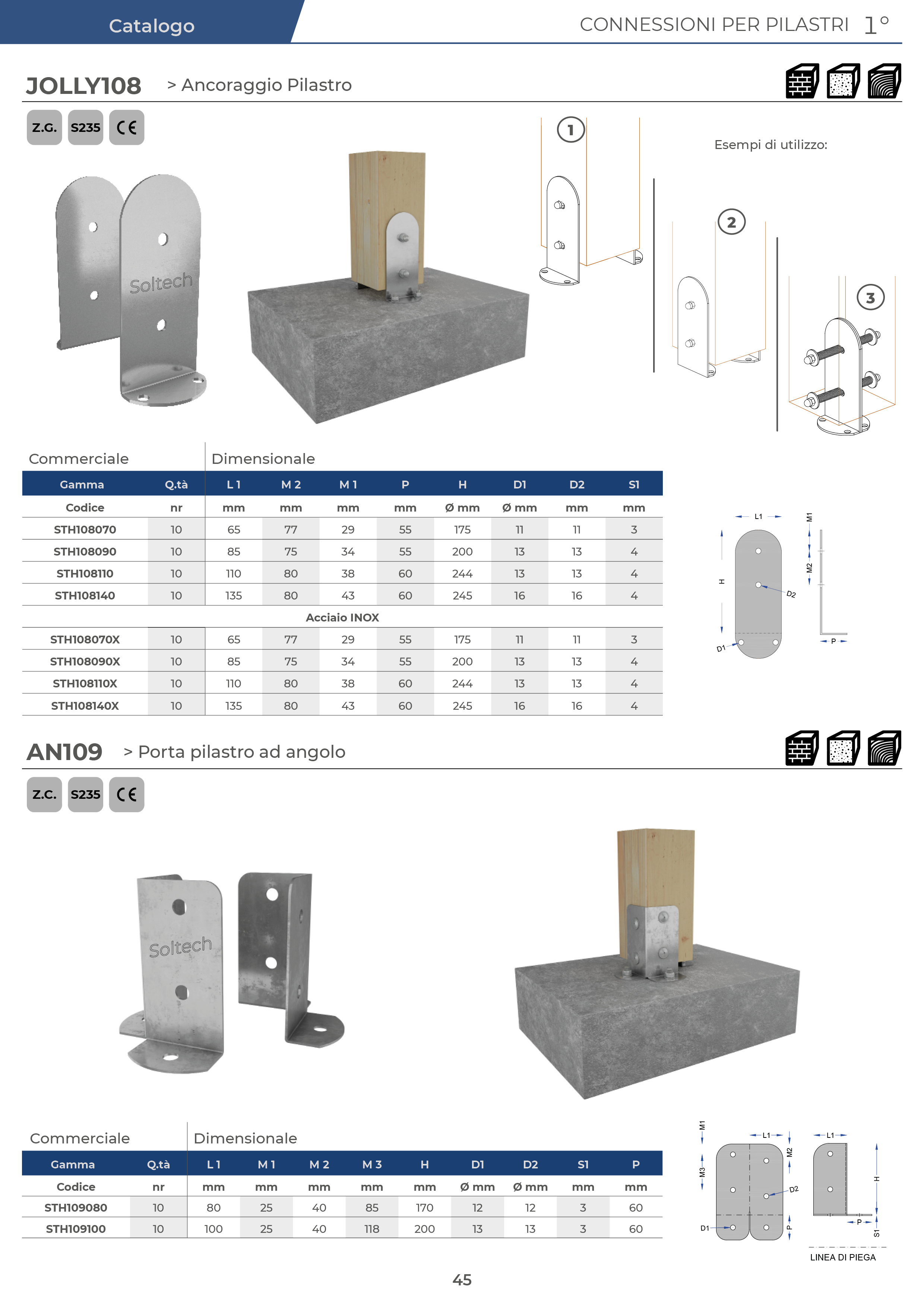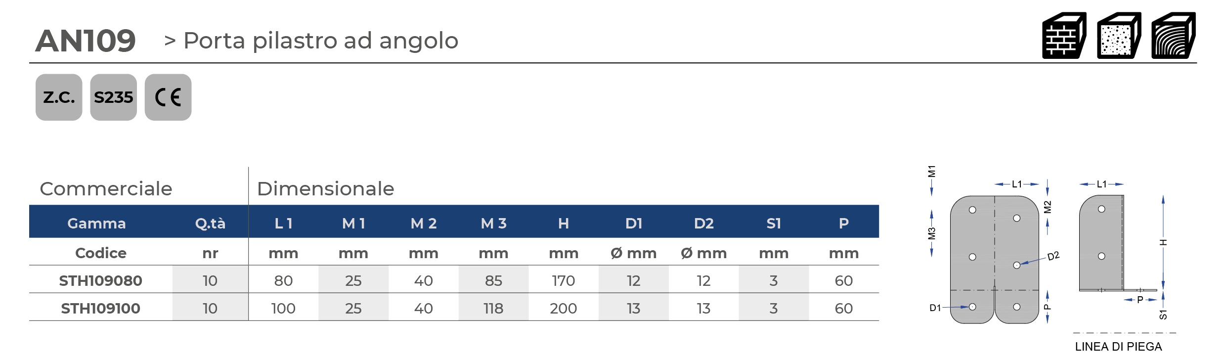 Portapilastri ad angolo realizzati in acciaio S235 e zincati a caldo