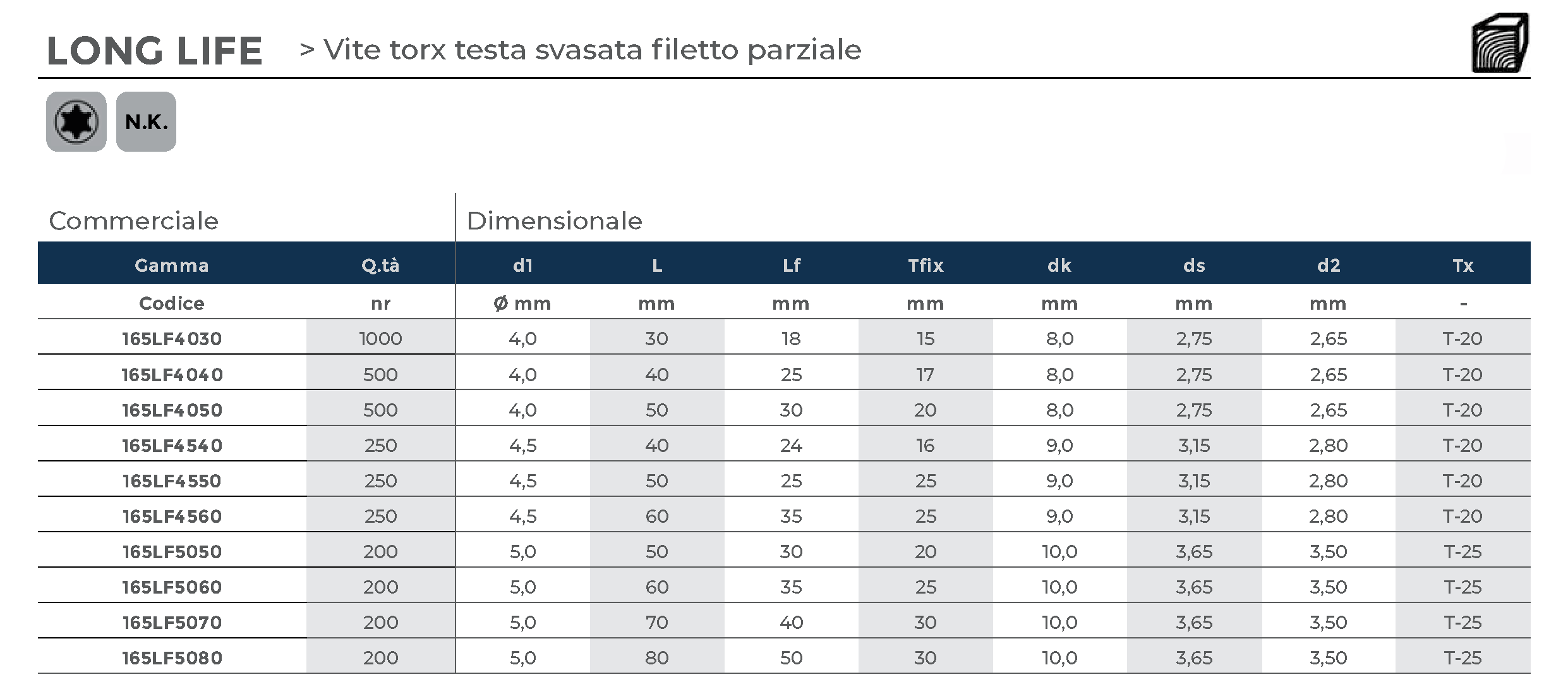 Vite Torx testa svasata con filetto parziale, trattamento al al nikel
