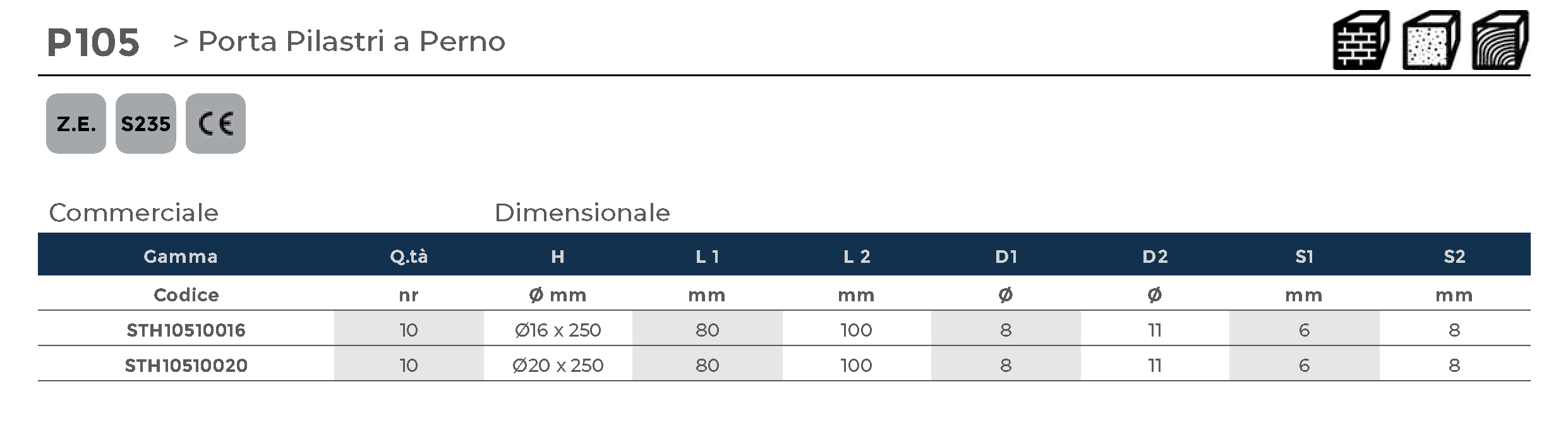 Portapilastri a perno in acciaio S235 con trattamento di zincatura elettrolitica.