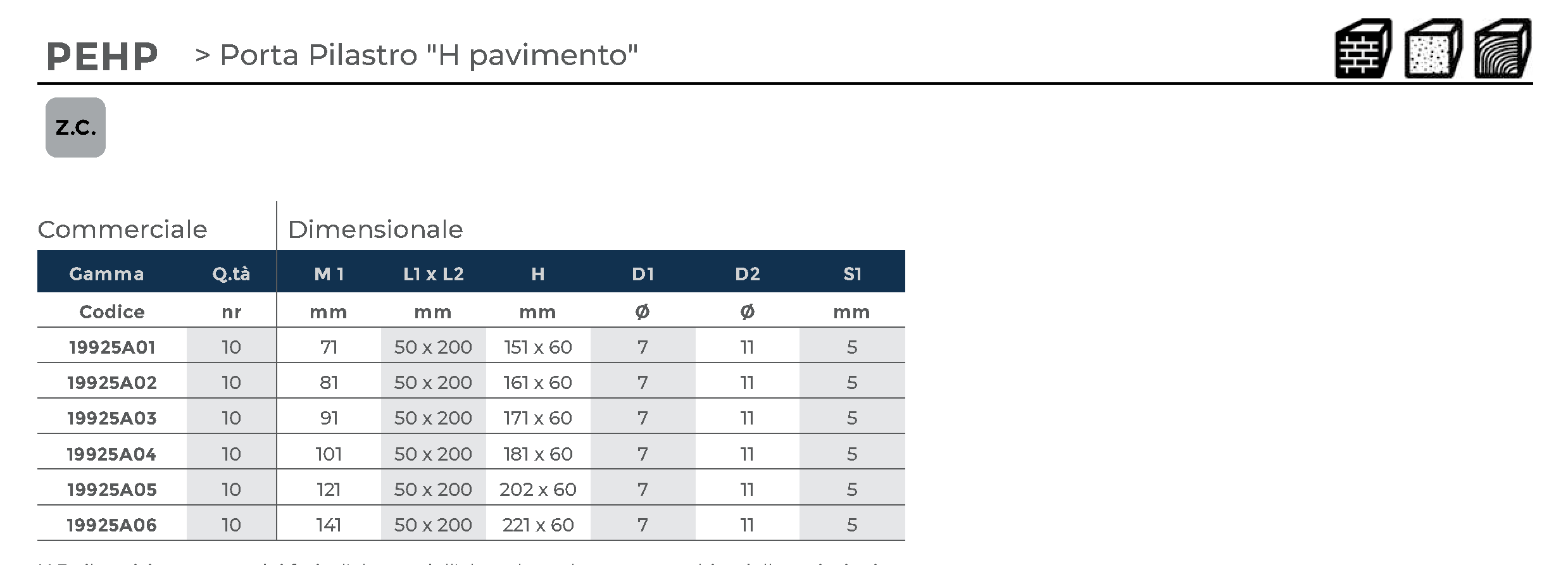 Porta-pilastro a H da pavimento