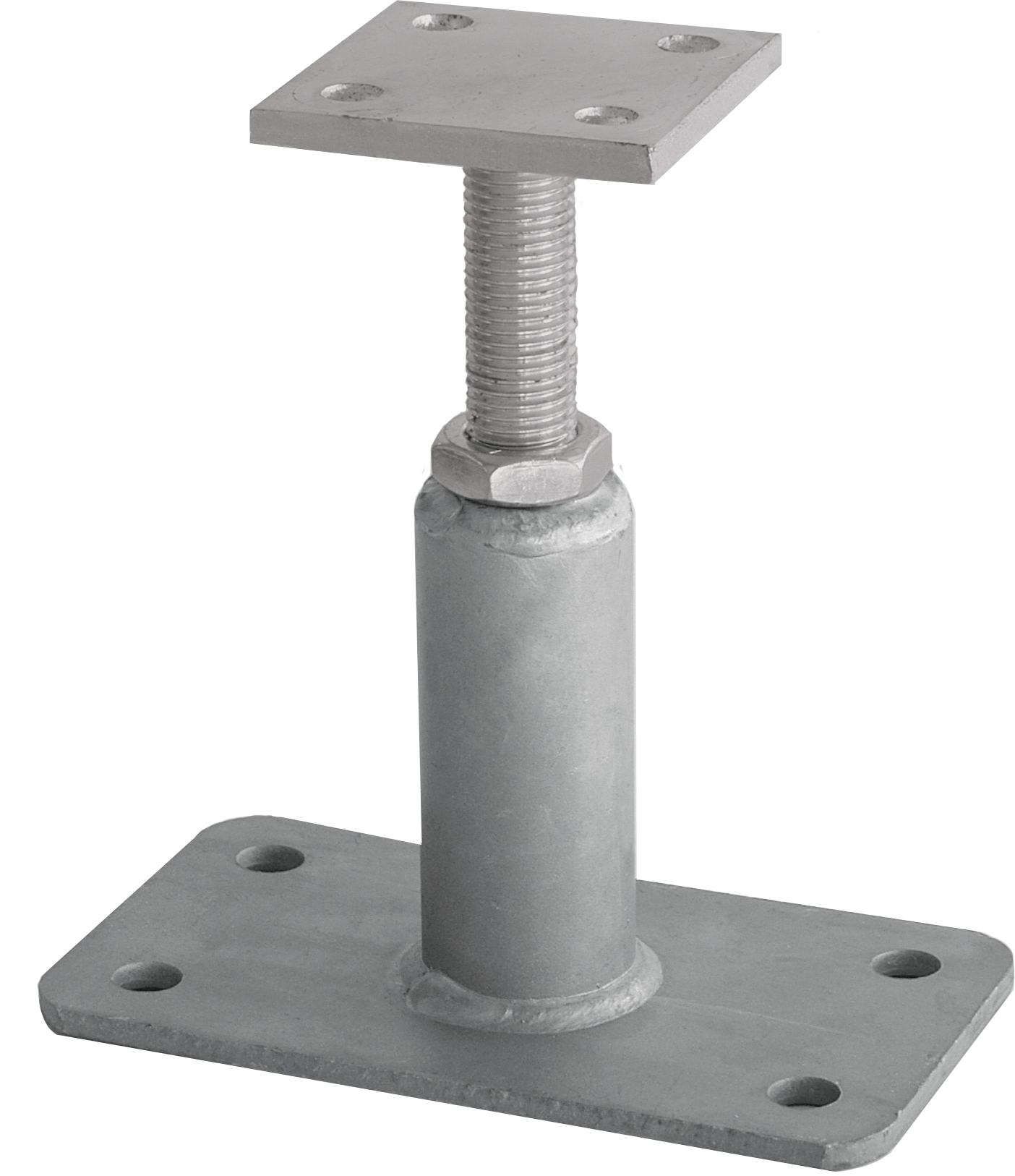 I portapilastri PPR sono portapilastri regolabili facili da installare, senza la necessità di eseguire ulteriori lavorazioni di finitura, preforatura e fresatura sul legno, con elevata capacità portante nei confronti dei carichi verticali di trazione e compressione. L’altezza dei portapilastri PPR può essere regolata anche dopo il montaggio, per compensare le tolleranze di lavorazione connesse alla progettazione, nonché i successivi assestamenti delle fondazioni. Applicazioni: i portapilastri PPR vengono utilizzati per giunzioni all’esterno, su fondazioni in cemento armato, di pilastri in legno massiccio C24 o superiore e legno lamellare, in classi di servizio 1, 2 e 3 secondo la norma DIN EN 1995-1-1. Materiale: acciaio da costruzione S235JR zincato a caldo secondo DIN EN ISO 12944-2 (C3).