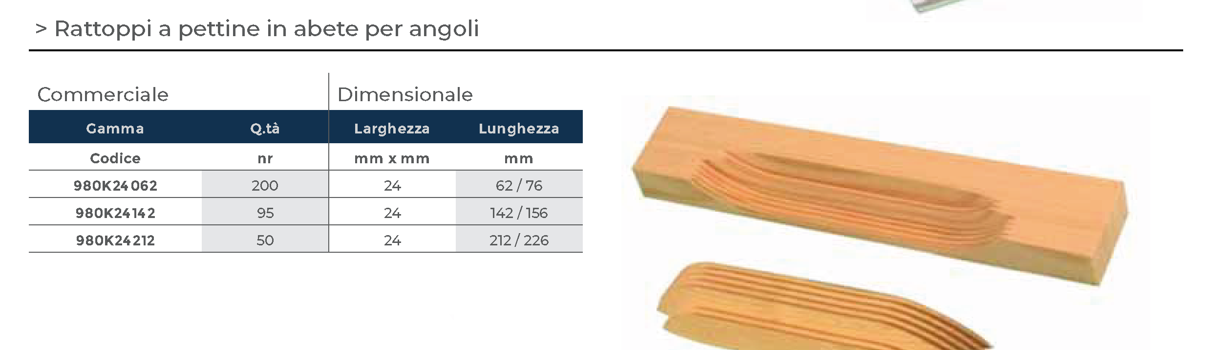 Rattoppi a pettine in abete per angoli