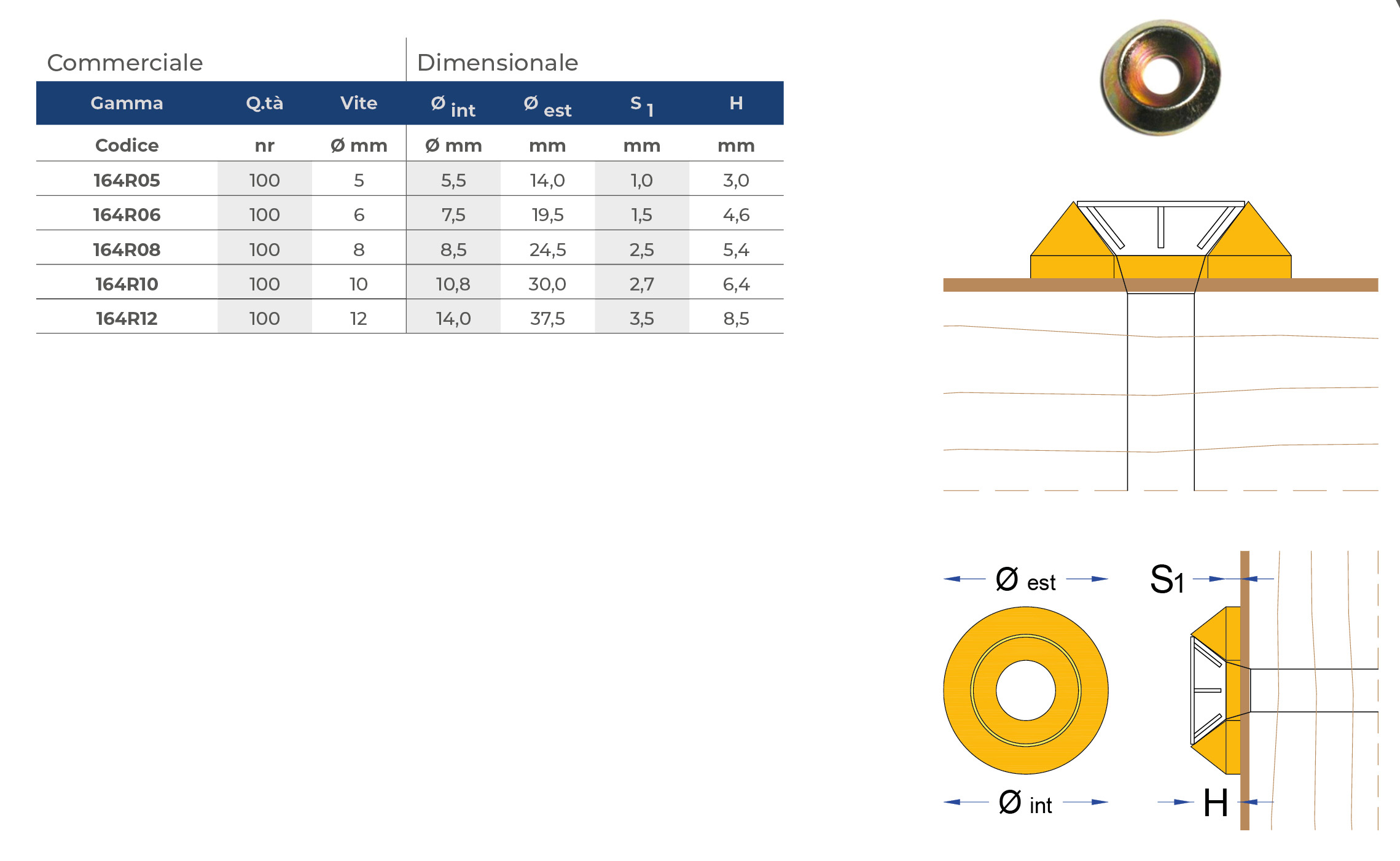 Rondella sottovite da utilizzare con viti per legno con testa svasata