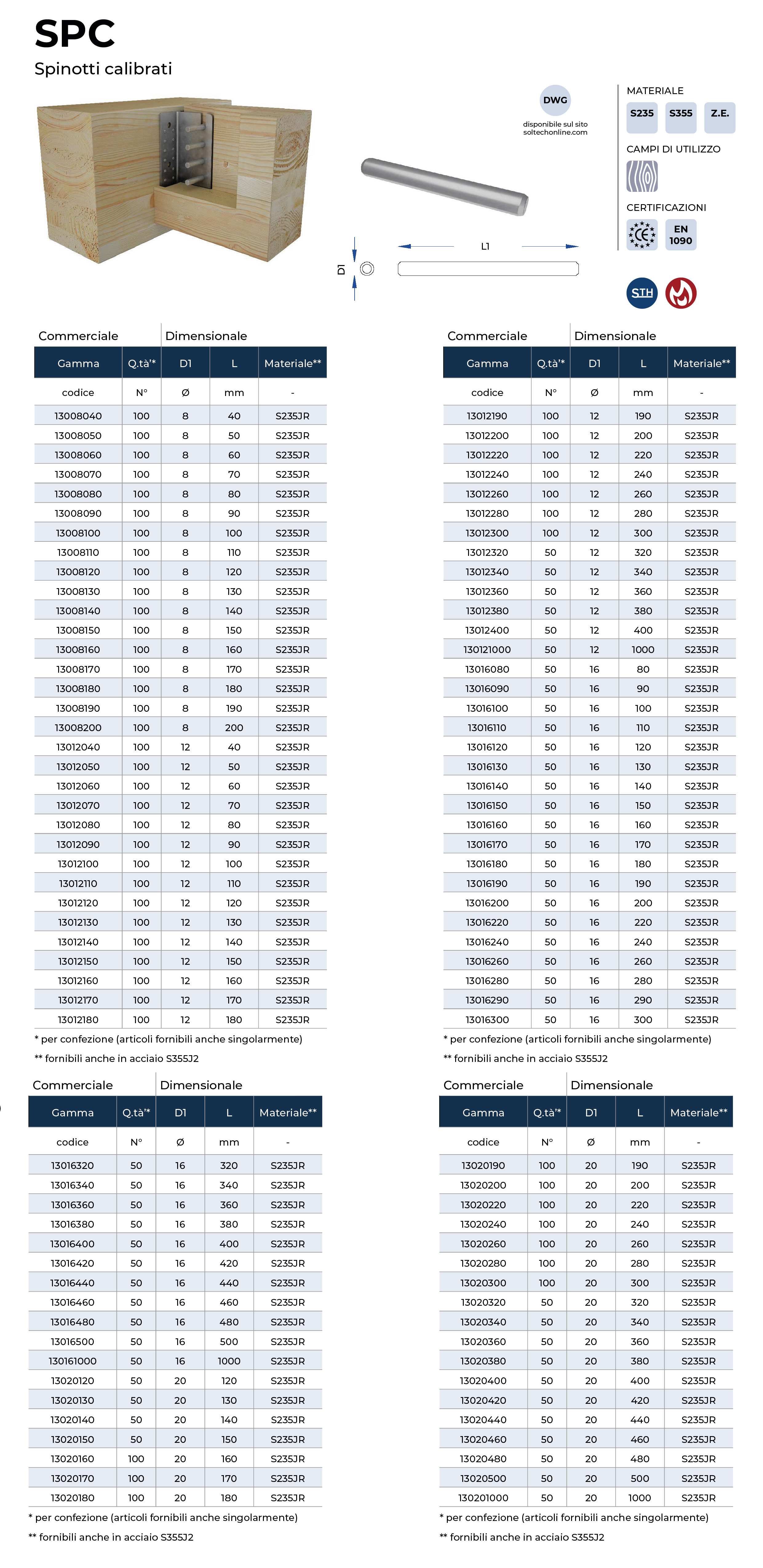 Spinotti calibrati in acciaio S235-S355