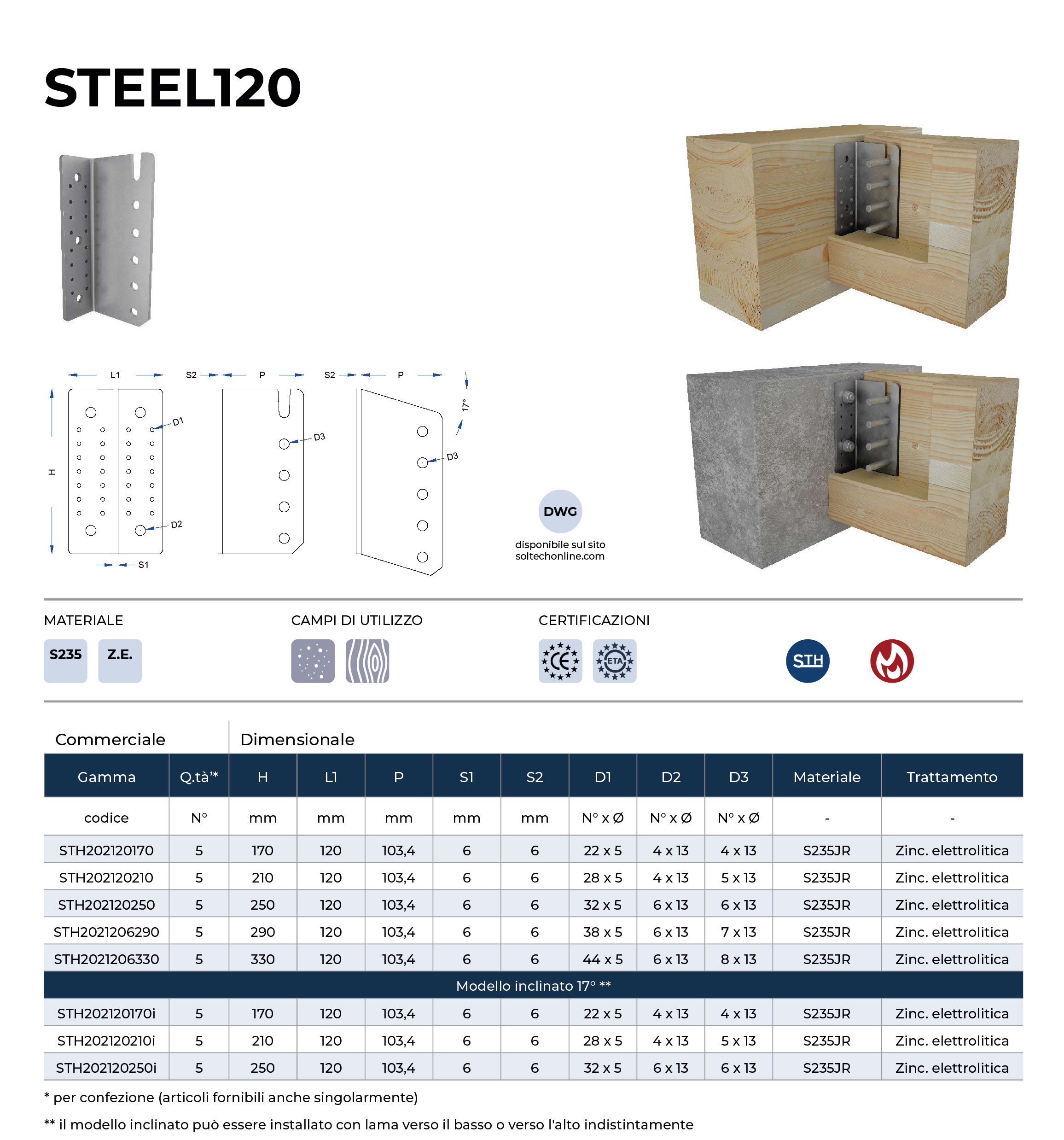 Staffe a scomparsa realizzate in acciaio S235 per collegamenti legno-legno e cemento-legno