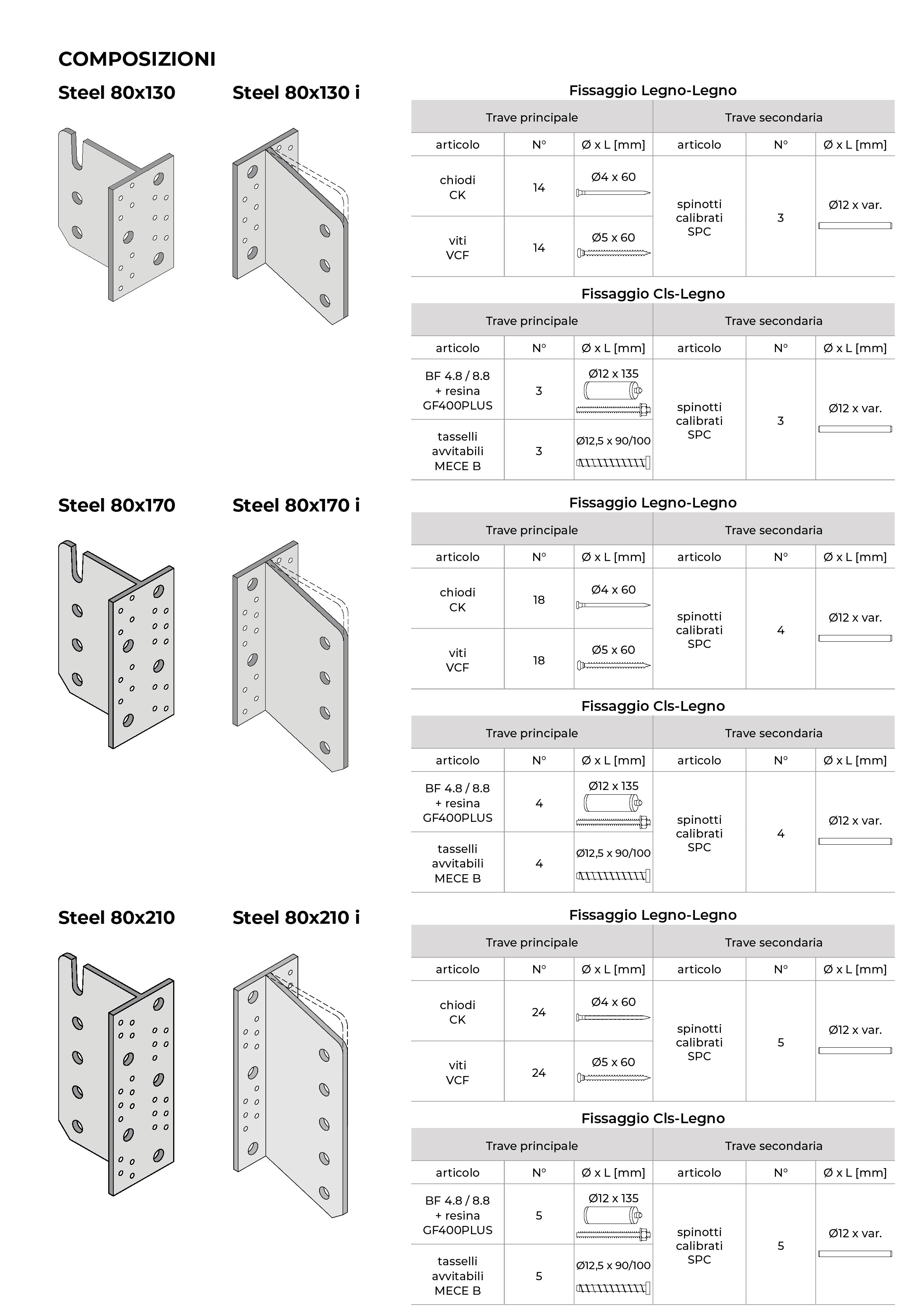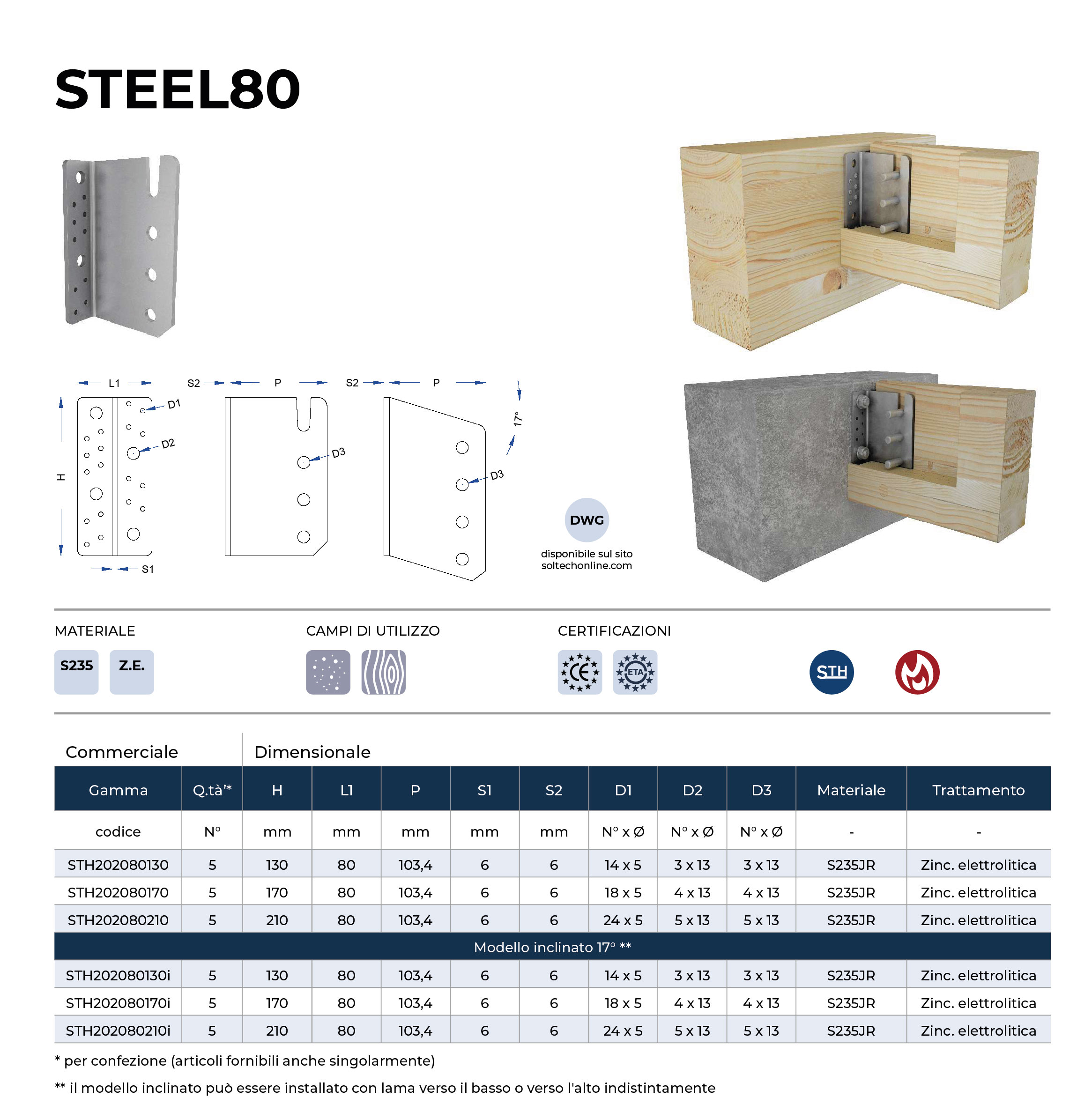 Staffa a scomparsa in acciaio S235 per collegamenti legno-legno e cemento-legno
