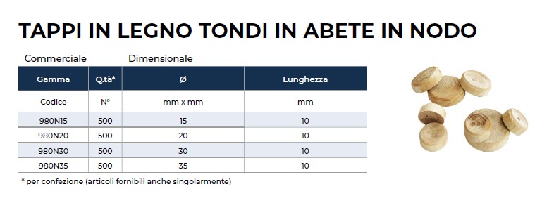Tappi in legno di abete tondi in nodo