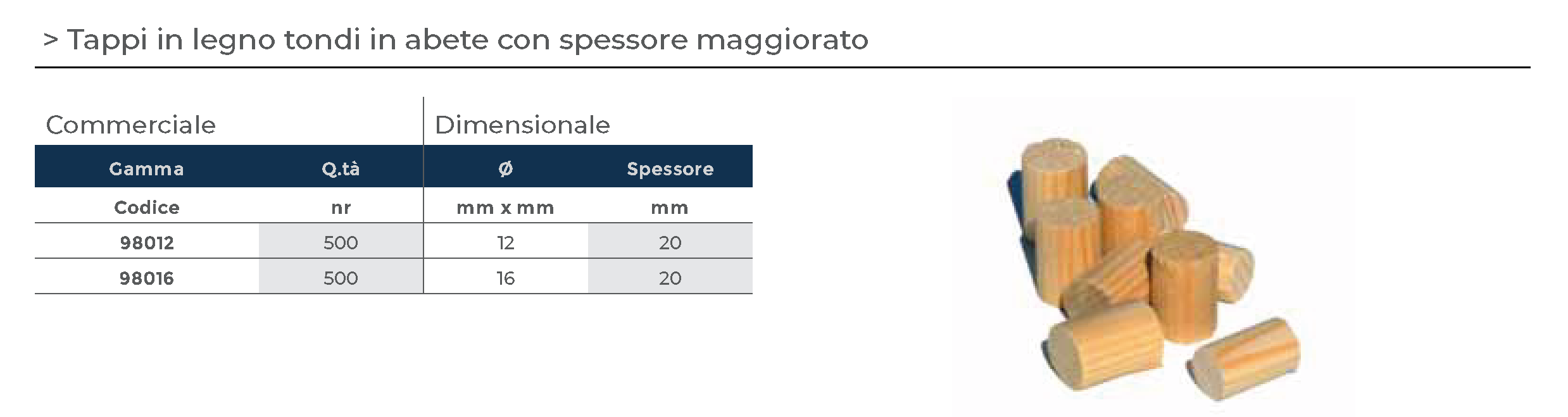 Tappi in legno in abete tondi con spessore maggiorato