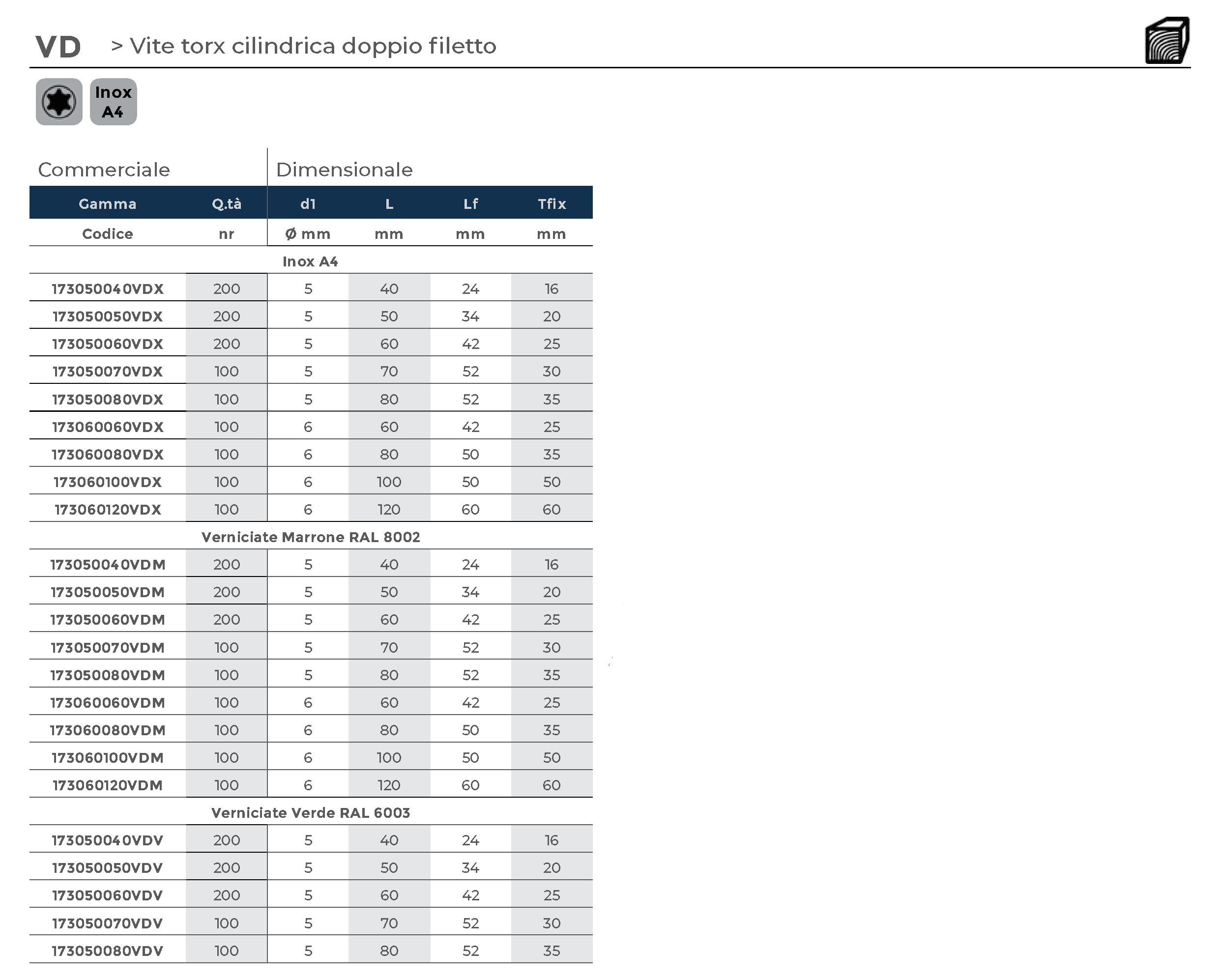 Vite Torx con testa cilindrica e doppio filetto