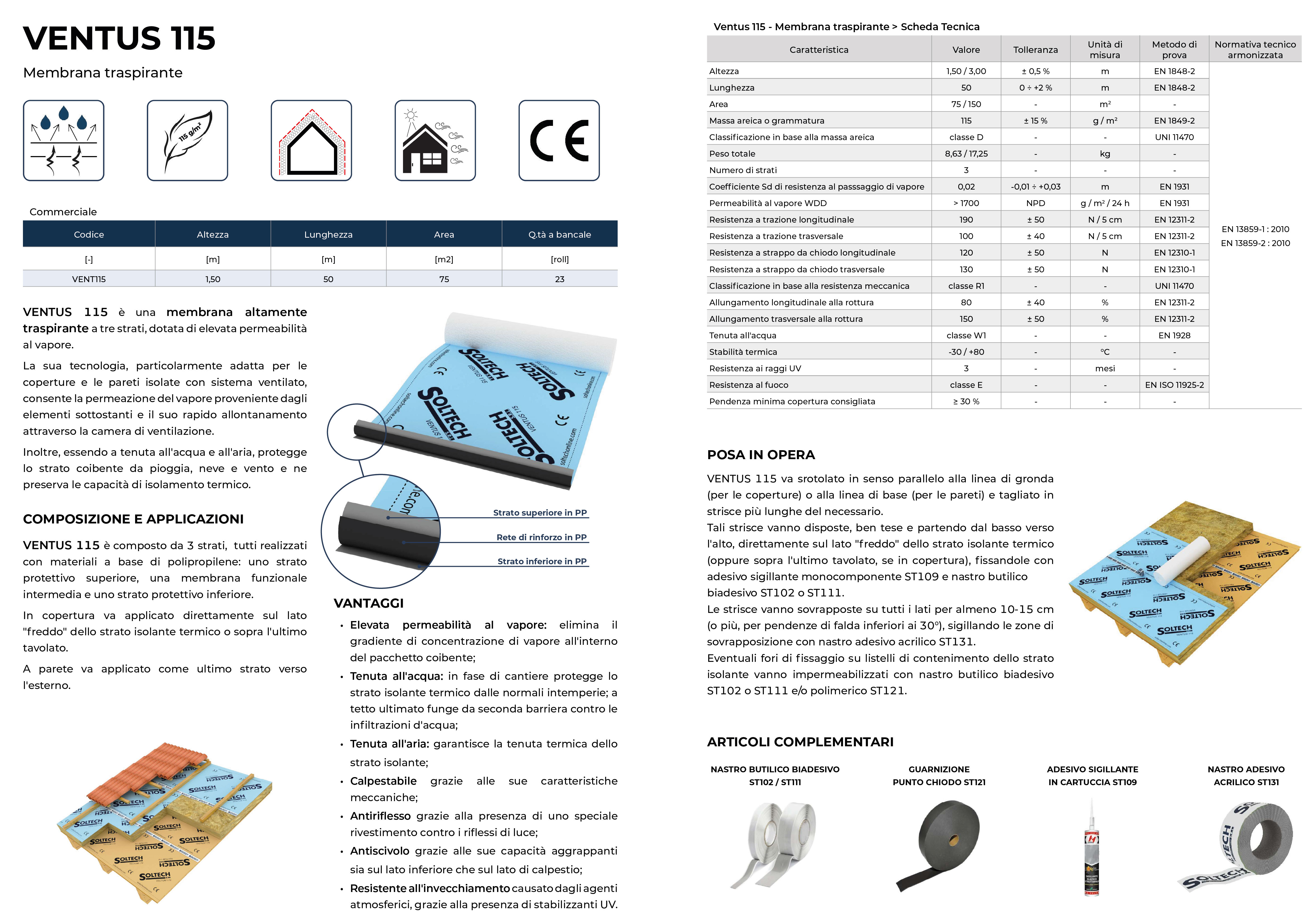 VENTUS 115 è una membrana altamente traspirante a tre strati, dotata di elevata permeabilità al vapore. La sua tecnologia, particolarmente adatta per le coperture e le pareti isolate con sistema ventilato, consente la permeazione del vapore proveniente dagli elementi sottostanti e il suo rapido allontanamento attraverso la camera di ventilazione. Inoltre, essendo a tenuta all'acqua e all'aria, protegge lo strato coibente da pioggia, neve e vento e ne preserva le capacità di isolamento termico.