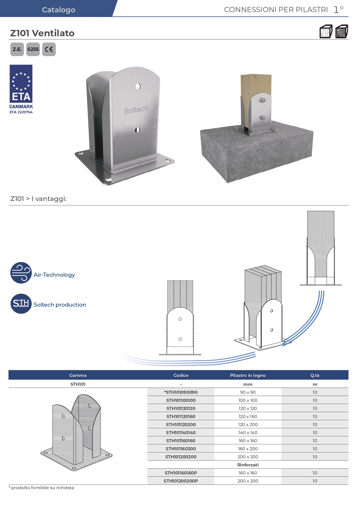 Portapilastri a bicchiere in acciaio S235 con trattamento di zincatura elettrolitica. La sua particolare forma studiata appositamente per creare Ventilazione alla base del pilastro, evita il crearsi di ristagni d'acqua e quindi tutte le conseguenze note come funghi e marcescenze